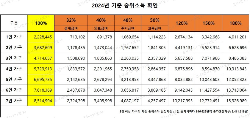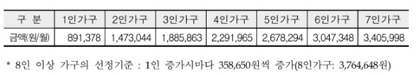 4인 가구 기준 (13.16% 증가) : 162만 289원(23년) -> 183만 3,572원(24년)