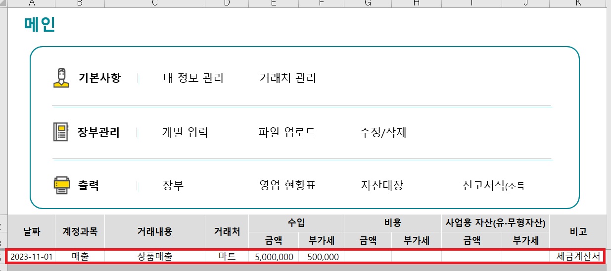 간편하게 프로그램 및 엑셀로 장부를 작성하고 그 파일로 세금신고도 하면 편하겠지요?