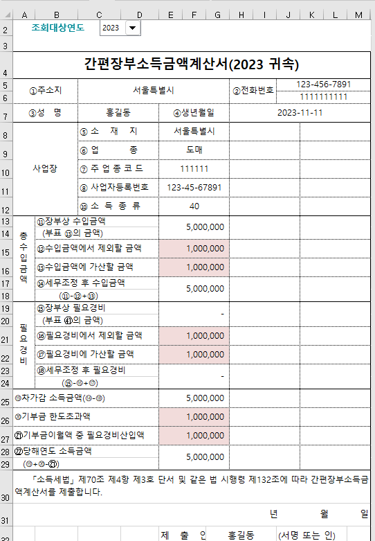 금액 및 내용 입력 후 신고서식 누르면 자동으로 금액이 계산되서 나옴