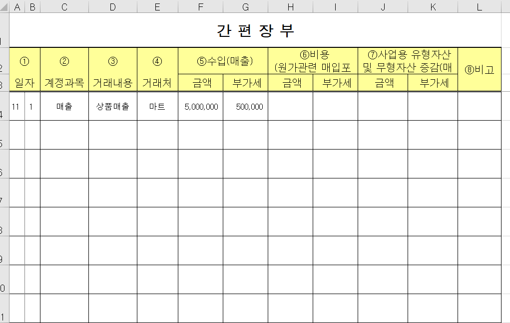 ✔️ 간편장부 엑셀 예시