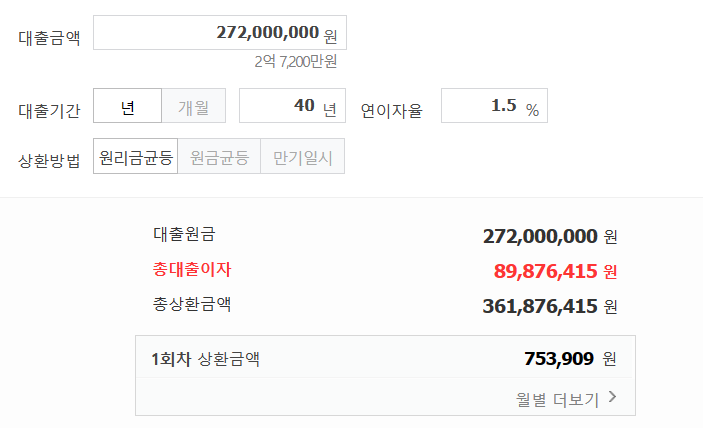 - 최저 하한 금리 연 1.5% 가정 ▶ 원리금상환액 대략 월 75만 원
