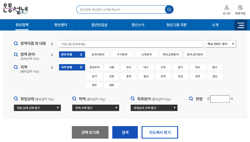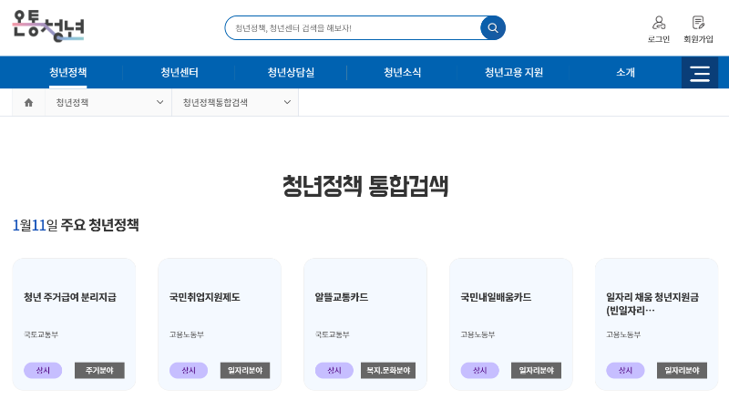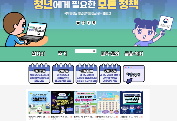 이곳에서 청년들을 위한 정부의 다양한 지원 청책을 한눈에 확인하실 수 있습니다.